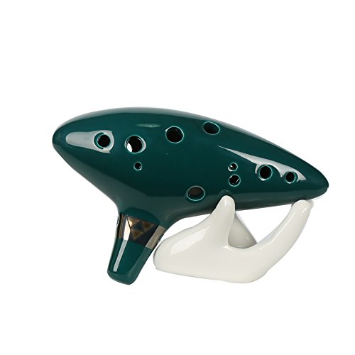 Description: This handcrafted ocarina is a high-quality, kiln-fired ceramic instrument tuned by professional musicians to provide the optimal melodic experience. An easy-to-learn piece which can be mastered in a short period of time, with the ability to spend years improving your technique, discovering new scales and harmonies. The Ocarina is the perfect instrument to practice techniques and articulations, rhythms, speed development, precision, note transitions and different musical styles. Our 12-Hole Ceramic Ocarina is finely glazed in a beautiful dark cobalt blue, detailed with a metallic silver band and gold Triforce logo. Alto C Pitch: A4-F6 including sharps and flats Features: Beautiful, accurate craftsmanship with tri-force symbol. Fully chromatic ocarina. Comes with neck-strap cord. Not a cheap plastic knock-off -- Made from kiln-fired ceramic with a beautiful and durable glaze. Measurements of 6' in length and 3.5' depth. Package Included: 1 x Ceramic 12-Hole Ocarina 1 x Neck Strap Cord (Random Color) 0 |