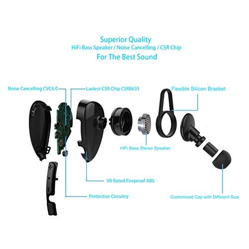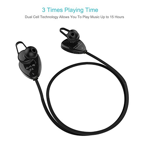 3 Times Playing Time: The latest CSR 4.0 + EDR (fully backward compatible) and dual cell technology for longer playing time up to 15 hours, standby time, longer distance, better stereo sound and noise cancelling, which is 3 times as AirPods and other earphone.