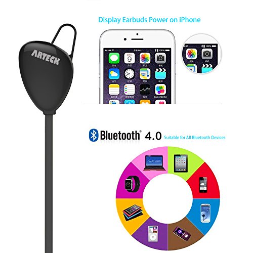 Arteck Wireless Bluetooth Headphones for Running Sports Sweat-proof Portable Earphones with Rechargeable 15 Hours Playing Battery for iPhone 7 Plus 7 SE 6 Plus 6 5 4, iPod, Android Smart Phones-Black