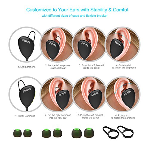 What you get: Arteck Sports Earbuds, 6 customized silicon tips and ear hooks, 1 usb charging cable, user manual and 24 months friendly customer service.