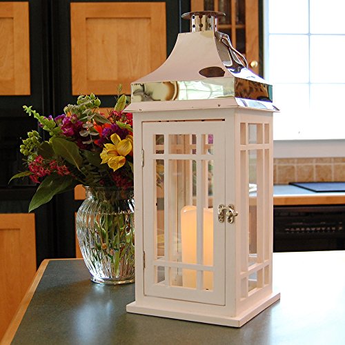 LumaBase 95001 Wooden Lantern with LED Candle, White/Silver