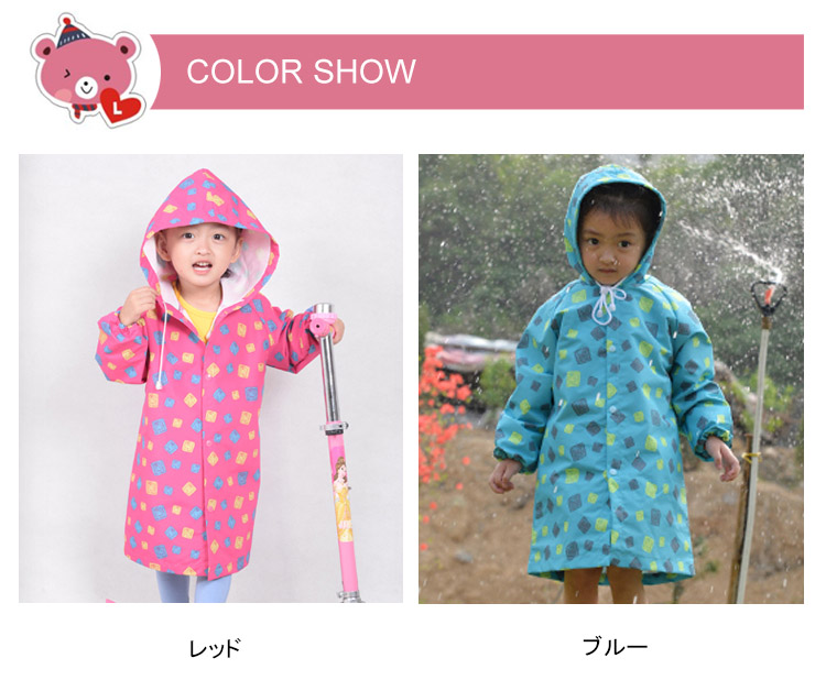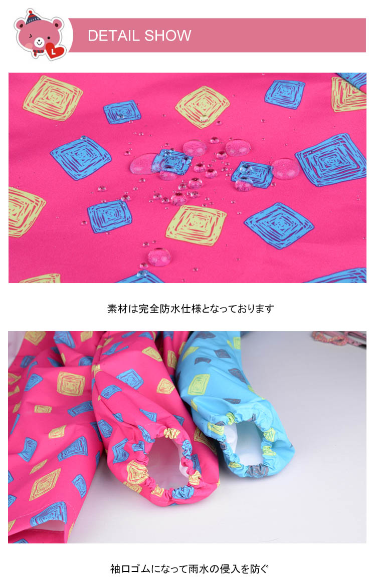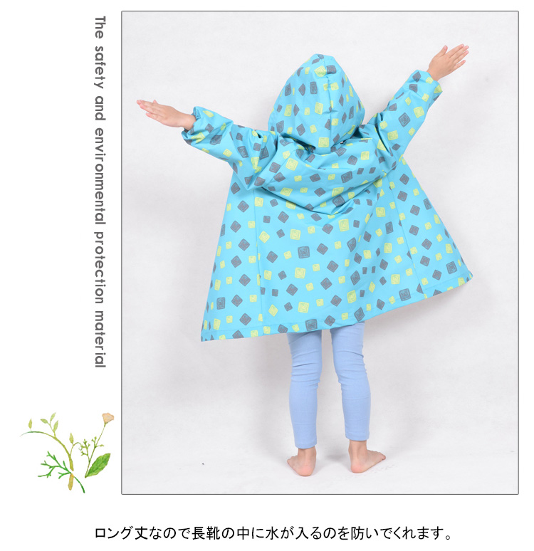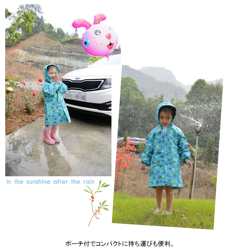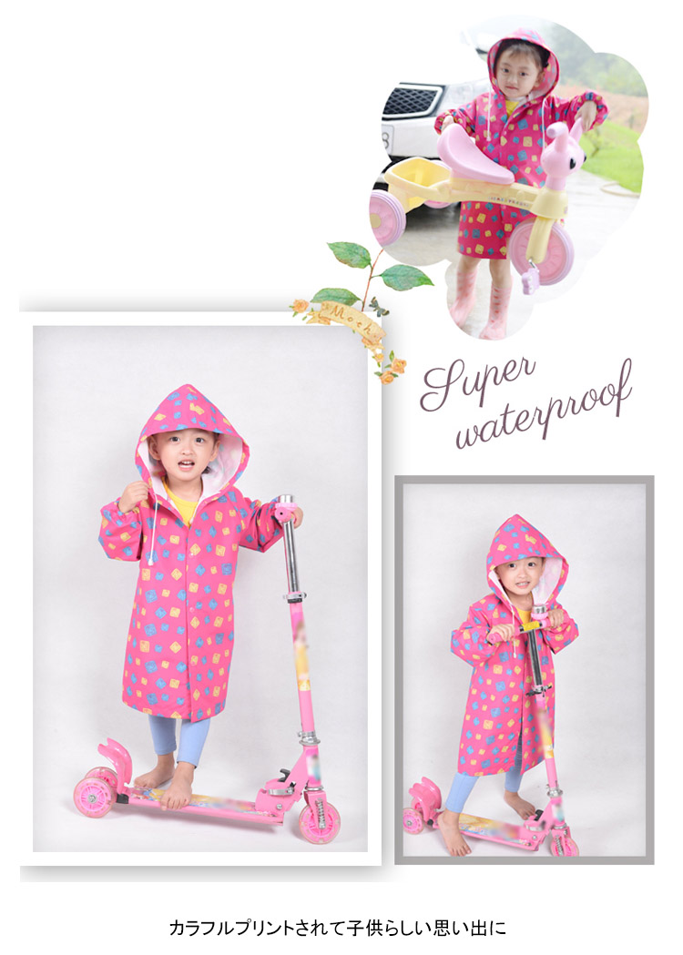 | 雨の日の通園・通学・遠足に最適な子供用レインコートカラフルプリントされて子供らしい思い出に素材は完全防水仕様となっております。ポーチ付でコンパクトに持ち運びも便利。ロング丈なので長靴の中に水が入るのを防いでくれます。とっても可愛いデザインなので雨の日が待ち遠しくなっちゃいます♪ | |