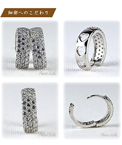 フープラインにスワロフスキーを3列に敷き詰め美しいエレガンスなデザインとなっております。シンプルな中にも控えめな女性らしさが漂うサイズ感です。ラインに沿って型抜きされたハートはちょっとした可愛らしさのポイントです。