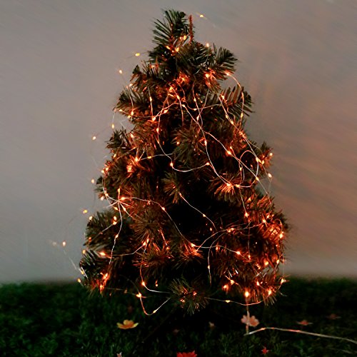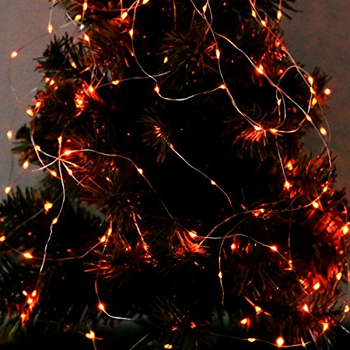 Color Our Life Battery Operated LED String Lights 66 Led's on a Flexible Silver Wire 16.4 Ft 8 Modes with Wireless Remote Control for Christmas, Outdoor, Patio, Garden, Party Decoration (Orange)