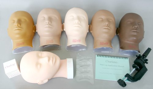 This learning tool kit comes with everything you need to practice make-up and try new, creative artistic faces. The Charlene Make-up Masks are made of a special material that allows the make-up artist to erase all the make-up with the Charlene Creme Cleanser and start again with a fresh look! **Currently, this kit includes an open eye flatback head with five closed eye makeup masks. ** How to use: First, use the Charlene Creme Cleanser to prep the face by generously applying the creme all over the mask prior to using. Be sure to gently rub creme in the material and wipe off any excess prior to make-up application. This creme will protect the material of your Make-up Masks from staining with strong pigment colors such as reds. You may use any household make-up of your own or check out our complete Make-up Cosmetics and Brush Kit, which would include several different shades of foundation, blushes, concealers, and eyeshadow to match perfect with any skin-tone color.Tightly fit a mask to the flat-back mannequin. You may lay it flat on a table to practice facials, massaging, or eyelash placement or you can place it on the mannequin clamp holder to simulate a model sitting in front of you for make-up application. Included in the kit, is the Charlene Make-Up Instruction Guide Book for step by step instructions on how to prep the skin and apply make-up.Feature