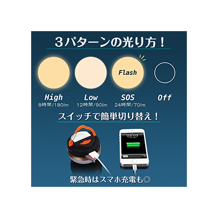◆【사용법은 초간단】버튼을 것만으로 남짓⇒약⇒SOS의 3단계 모드가 변환 가능.연속 점등 시간도 충분한 길이를 확보 ⇒ High8시간,Low12시간,플래쉬24시간