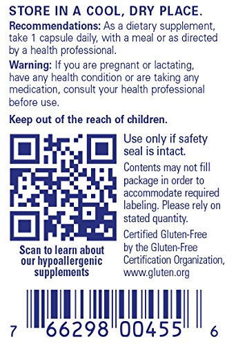 FREE FROM: At Pure Encapsulations, our product are free from wheat and gluten; egg; peanuts; coatings and shellacs; GMOs; magnesium stearate; trans fats and hydrogenated oils; artificial colors, flavors and sweeteners; unnecessary binders, fillers and preservatives. Any product containing ingredients derived from allergens, such as soy, dairy or shellfish, is clearly labeled. All two-piece capsules are hypoallergenic and vegetarian.