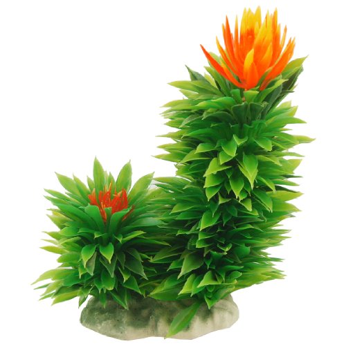 Uxcell Ceramic Base Aquarium Ornament Flowers Grasses, 6.7-Inch, Orange/Green