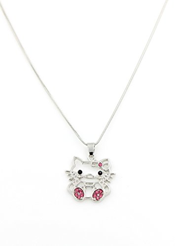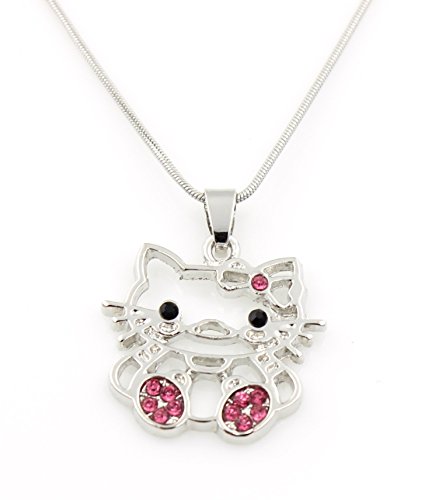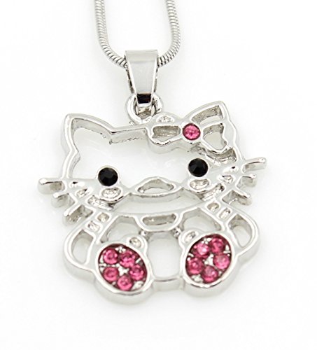 Sweet Princess Hello Kitty Heart Pendant Necklace - Sweater Chain with Swarovski Austrian Elements Crystal Rhinestone - Fashion Jewelry for Girls Bling outlined