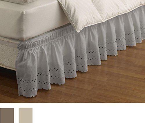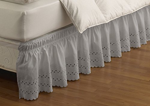 EasyFit 11578BEDDQKGGRE Wrap Around Eyelet Ruffled Queen/King Bed Skirt 80-Inch by 60-Inch with 15-Inch drop, Grey