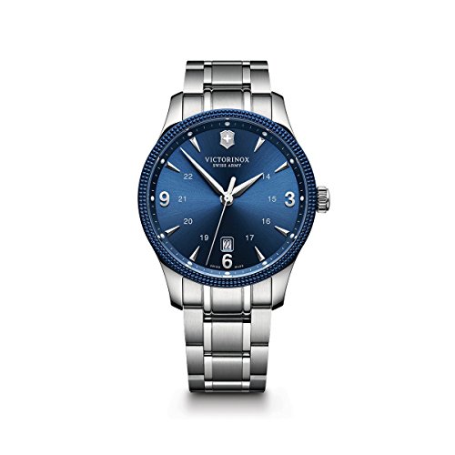 Swiss made quartz alliance watch with antireflective sapphire crystal Clean open dial with date calendar Swiss-quartz Movement Case Diameter: 40mm Water Resistant To 330 Feet Brand : Victorinox Item model num : 249034 MPN(PartNumber) : 249034 EAN : 9054473156413 Product Dimensions(LxWxH) : 16x16x16cm ; 635 g Package Dimensions(LxWxH) : 13x13x12cm ; 635 g