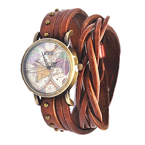 MINILUJIA Women Watches Soft Leather Wrap Arond Watch Traval Word Map Watch Men Watch Brown/Black (15.95" Length)