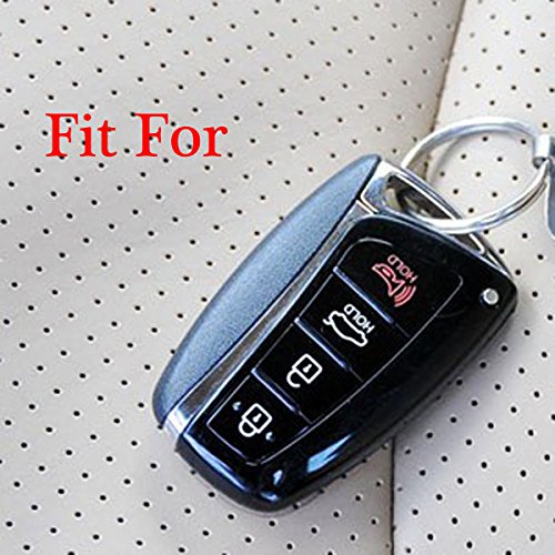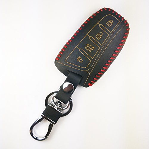 Coolbestda Leather Key Fob Remote Skin Cover Case Jacket Keyless Entry for Hyundai Santa Fe IX45 Genesis Equus Smart 4 Buttons Key
