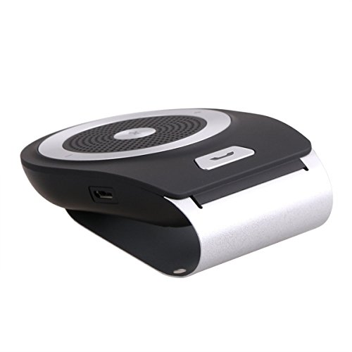 -. Feature : Bluetooth V3.0+EDR with original CSR chipset, capable of pairing with 2 mobile phones simultaneously within a distance of 10 meters. Work with any bluetooth-enabled devices,including iPhone, Android smartphones, tablets, iPad, laptop or MP3 players, etc. / Voice prompt battery level, bluetooth connection status and GPS navigation. Built-in high sensitivity microphone with HD-Voice and Noise cancellation DSP technology delivers Crystal clear sound. / Major function:answer calls, hang up calls, reject calls, last number redial, volumn control, play music, switch between car speakerphone & mobile headset. / Easy installation. This speakerphone can be attached to car visor directly by metal clip(included), convenient and easy to touch. / One in-car charger and USB cable included so that you can charge this speakerphone any time; Ultra-low power consumption, with up to 20 hours talk time and 60 days standby time.