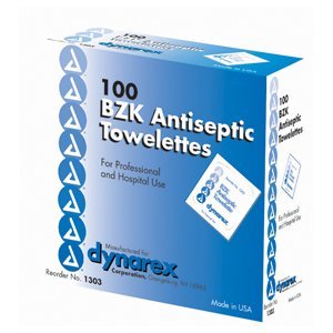 Studio : DYNAREX CORP. *** Publisher : DYNAREX CORP. *** Binding : Health and Beauty Product Description BZK ANTISEPTIC TOWELETTES 1303 100 each for effective cleansing. Alcohol free. Will not sting. Ideal for perineal and maternity care, clean catch kit use. Contains benzalkonium chloride solution USP 1:250, to yield 1:750 0
