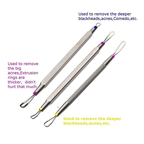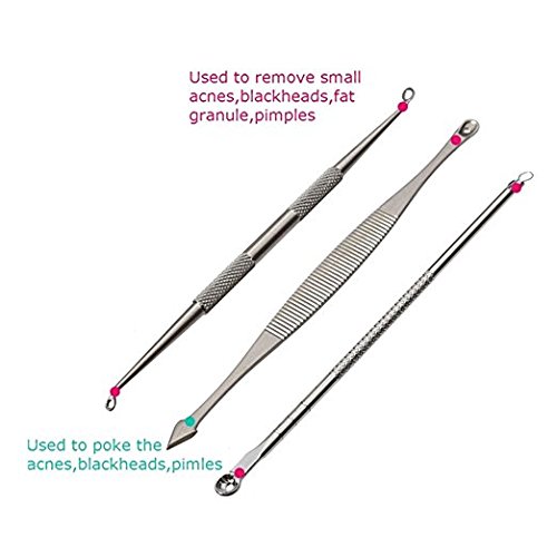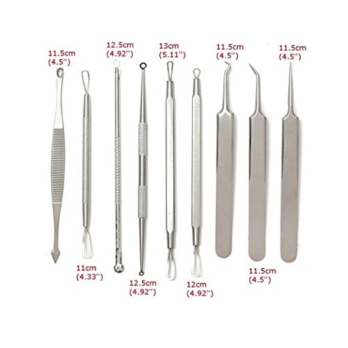 -. Feature : Blackhead remover kit : The package comes with 9 extractors instruments perfectly packed inside an easily portable gift box. Extremely useful you can easily take your case anywhere you want. / The tools are made with professional high quality material which results in sleek, precise and very balanced extractor instruments. Good for its purpose for treating pimples, facial impurities and blemishes. / Equipped with 9 extractors instruments like pullers and pushers which can easily remove blackheads, comedowns, acne and other facial impurities. Removes all blemishes if used correctly. / Stop popping with dirty fingers: Precision sharp needles with comfortable handle at get straight to the point without damaging pores. You will not have to worry about scarring, redness, or any sensitivity issues with high-quality anti-slip tools! / Antibacterial coating: Electroplate stainless steel is rust-free, corrosion-free, and made specifically to stay germ-free to prevent infection. Simply clean with alcohol before and after to maintain cleanliness!