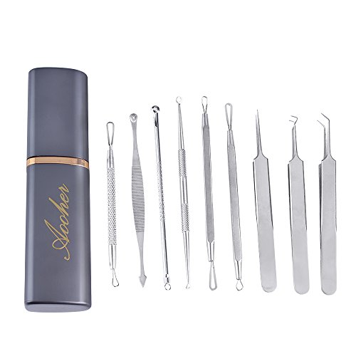 -. Title : Blackhead Remover Acne Tool Kit , Aooher Professional Pimple Stainless Steel Comedone Extractor Instrument Tool Set for Curing Facial Blemish Whitehead 9PCS