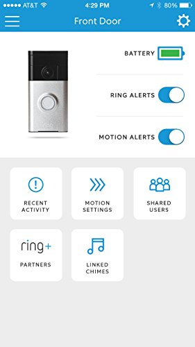 The Ring Video Doorbell is the world's first battery-operated, Wi-Fi enabled, HD video doorbell. The device enables homeowners to see and speak with visitors from anywhere in the world by streaming live audio and video of a home's front doorstep directly to the free iOS or Android app. The doorbell's built-in motion sensors detect movement up to 30 feet and HD video recording stores all recorded footage to the cloud which can be accessed via the Ring app. The Ring Doorbell is quick and easy to set up as it mounts and syncs in minutes and has a built in battery, however, it can also be powered through your existing doorbell wires.Feature