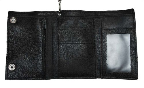 -. Feature : Features 1 ID slot, 2 credit card slot, 1 cash slot and one zippered pocket / 19" Removable Chain and Two Snap Closure / Embossed Harley-Davidson Old English Script / Made in the USA! / Measures: 6" x 3.5"