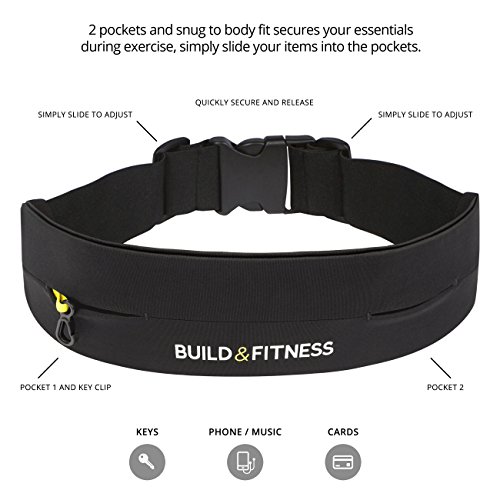 Running Belt, Fully Adjustable Fastener, Fitness Waist Belt, Key Clip. Fits iPhone 7 plus, Unisex, Suitable for Gym Workouts, Exercise, Cycling, Walking, Jogging, Sport, Travel, Outdoors