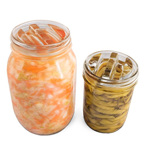 Grooved Weights by Aqqo are designed to help you enjoy fermenting process, save time and reach delicious outcome ?Set of 5 Grooved Weights is ideal for any Wide Mouth Mason Jar. They come in a beautiful gift box, which is intended to be used for a compact storage. ?Each glass weight comes with Grooved Handle, which allows you to grab the pebble to insert it into a wide mouth mason jar or extract it. ?Each glass weight is heavy and large enough to keep your veggies under the brine, has Concave Bottom to let air bubbles to escape and allow for even distribution of brine throughout your vegetables by keeping them fully submerged in it. ?Grooved Weights are made of food safe glass for mold-free ferments. Lead and Cadmium free. ?Satisfaction Guaranteed. 1-Year Warranty. ?Approximate Dimensions: 2.75 inch Diameter x 1 inch Thick How To Use? ?Pack veggies and brine into any wide mouth mason jar with 1.75" headspace ?Insert Grooved Weights into mouth of a mason jar, lightly press it down to push out the air, make sure it is slightly submerged in brine ?Remove any veggies that float up to the surface ?Top off the jar with your an airlock or a lid of your choice Choose Grooved Weights by Aqqo Now 0 |