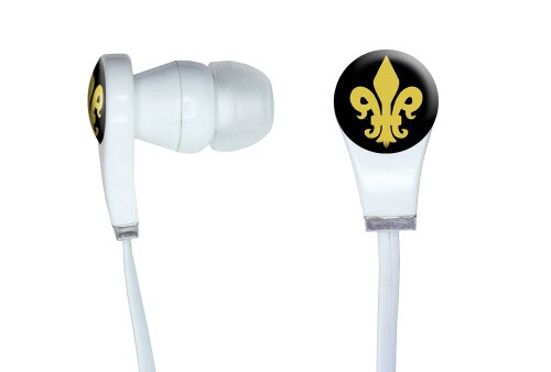 -. Title : Graphics and More Fleur de Lis - Gold on Black Novelty In-Ear Headphones Earbuds - Non-Retail Packaging - White