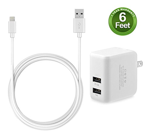 Fenergy 2-Port 3.1A 15W Wall Charger With Certified 6 Feet / 2 Meter Lightning to USB Cable