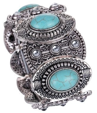 Easter, Alternative, Silver Ethnic Gothic Oval Turquoise Wide Bangle Bracelet
