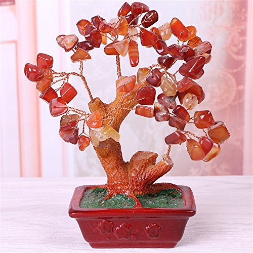 Crt Gucy 6.7 Inch Feng Shui Crystal Money Tree Natural Quartz Gem Stone Gook Lucky Tree Bonsai Style Decoration for Wealth and Luck?Brown