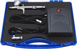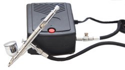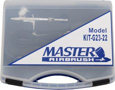 Light Duty System with Versatile Airbrush System Includes: Master Airbrush Model G23 Airbrush Set - Multi-purpose high performance dual-action airbrush with a 1/3 oz. Gravity Fluid Cup and a 0.3mm needle & nozzle that allows you to spray from hairline up to 1-1/2" wide patterns. (Full 1 year warranty) Master Airbrush Model TC-22 Air Compressor: Quiet, portable and lightweight mini 12V DC airbrush compressor with direct plug in 110V AC adapter. Air delivery 10 ltrs/per at 18 PSI. (Full 2 year warranty) 6 Foot Braided Airhose with Quick Disconnect and Air flow Adjustment Valve Blow Molded Plastic Storage Case Free HOW TO AIRBRUSH Guide Booklet Compressor designed for applications that require thin (light viscosity) materials: Temporary tattoos, cake decorating, tanning, nail art, cosmetics, thinned hobby-craft paint, etc... Key Airbrush Features: The Model G23 Airbrush includes a cutaway handle that allows you to quickly clean and flush it while the fluid control knob provides easy trigger adjustment and control of paint flow. both these features save you time and increase your productivity.Feature