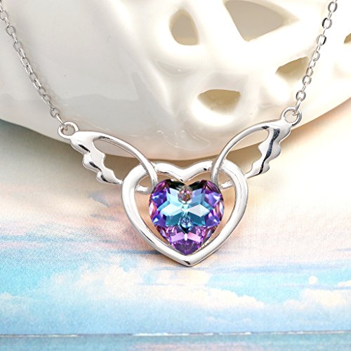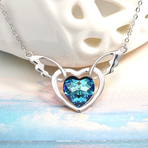 -. Title : BriLove Women 925 Sterling Silver Sweetheart Angel Wing Pendant Necklace Adorned with Swarovski Crystals