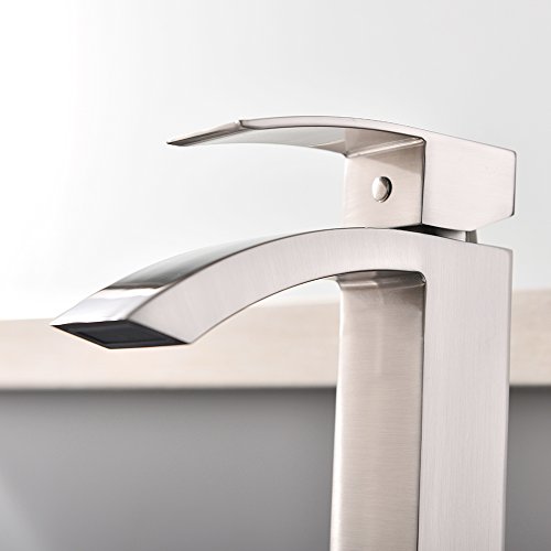 -. Brand : Shaco -. Color : OHT01L Brushed Nickel -. Feature : Polished Brushed Nickel finish, resist corrosion and tarnishing through everyday use / Extra large rectangular spout, waterfall style. / Single-lever design for effortless flow and water temperature control. / 3/8-Inch compression threads, U.S. standard size. Also fit for 1/2-inch water supply system. / Faucet total height:6.69inch; Spout height:3.74inch;Spout reach:3.94inch -. Label : Shaco -. Manufacturer : Shaco -. Model : SC-OHT001L -. MPN : SC-OHT001L -. PackageQuantity : 1 -. PartNumber : SC-OHT001L -. ProductGroup : Home Improvement -. ProductTypeName : PLUMBING_FIXTURE -. Publisher : Shaco -. Studio : Shaco -. Title : Shaco Commercial Single Handle Single Hole Stainless Steel Waterfall Lavatory Bathroom Sink Faucet, Brushed Nickel With Extra Large Rectangular Spout