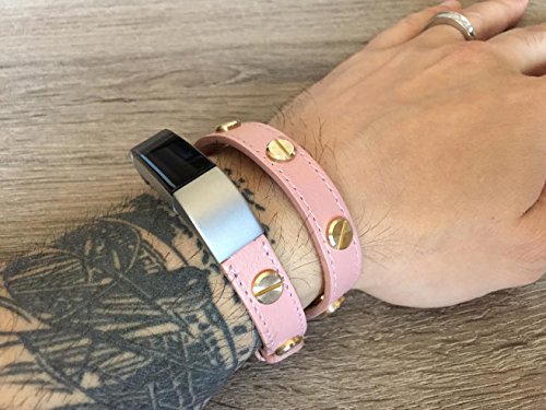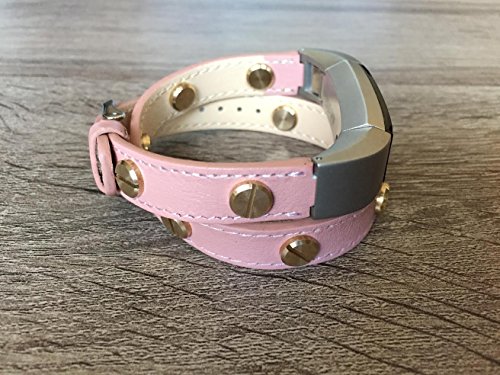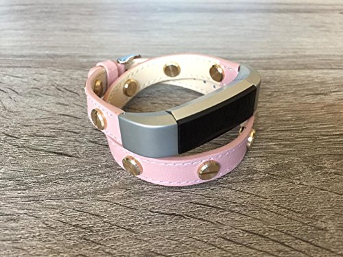 -. Title : Stylish Double Wrapped Pink Leather Band For Fitbit Alta And Alta HR Handmade Eco Friendly Bracelet With Multiple Gold Rivets By BSI