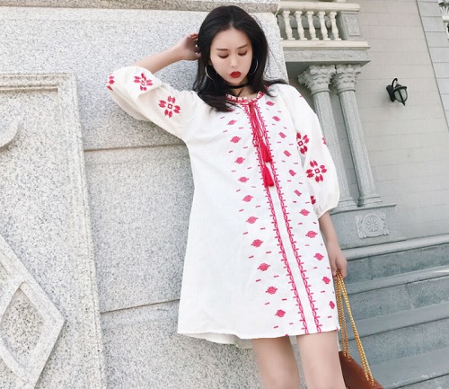 サイズ(単位:約cm)【F】 スカートの丈約90 バスト約108 袖丈約53