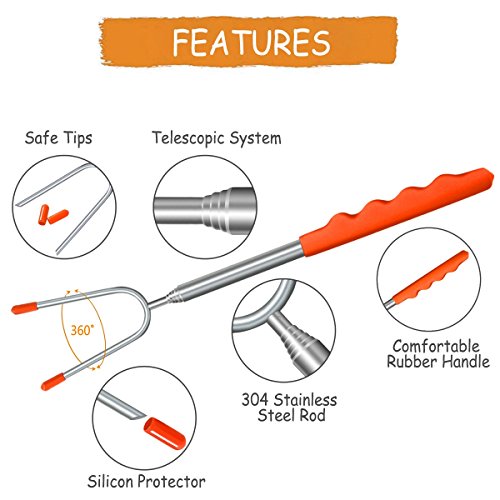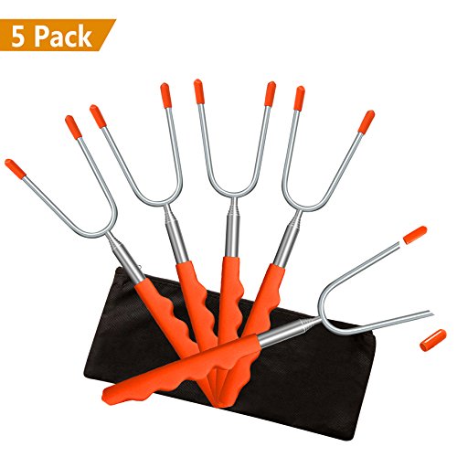 - MULTIPURPOSE - A must have for BBQ to make perfect marshmallows, smores, sausages, wieners, hot dogs,vegetables and fruits. Can also be used as a fork to move food from the grill to the serving plate. Retracting design to 10 inches and the zipper sealed storage bag are convenient for camping trips or storing at home.