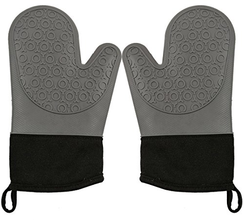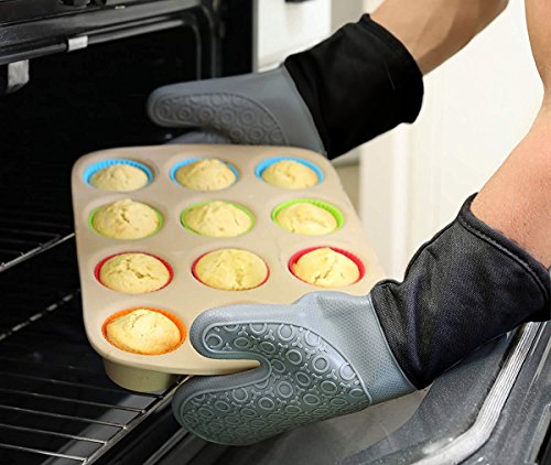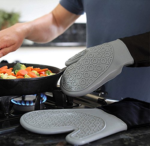 CalSunO Professional Silicone Oven Mitts Heat Resistant Commercial Grade Extra Long Quilted Cotton Lining Arm Guard- BBQ Grill Kitchen Versatile Insulated Potholder Comfortable Grip 1 Pair Set Gloves