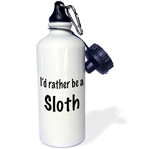 3dRose wb_108316_1 "Id rather be a sloth" Sports Water Bottle, 21 oz, White
