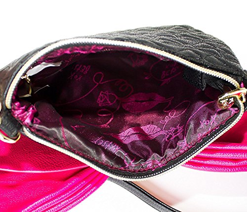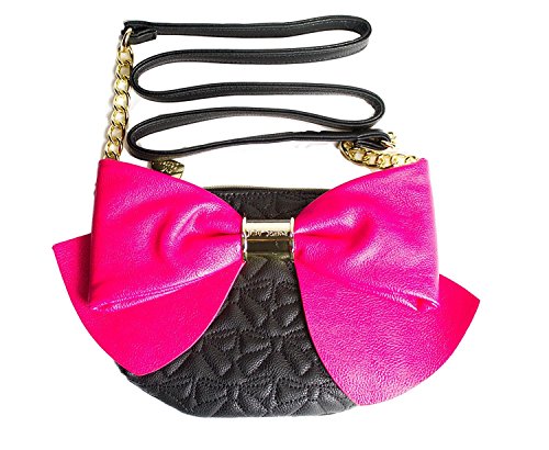 Betsey Johnson Bow Bow Bow Black Quilted Bow Faux Leather Fuschia Pink Crossbody Handbag