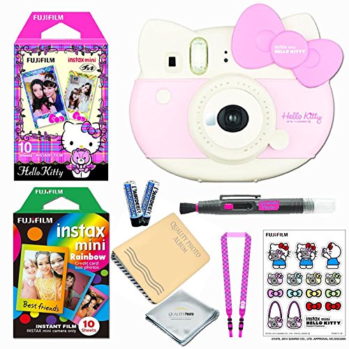 -- LIMITED EDITION BUNDLE -- includes; HELLO KITTY instant photo CAMERA - HELLO KITTY instant FILMS 10 pcs - instax RAINBOW film 10 pcs - Fujifilm instax photo ALBUM - Shoulder STRAP - Hello kitty Stickers - Lens Accessories