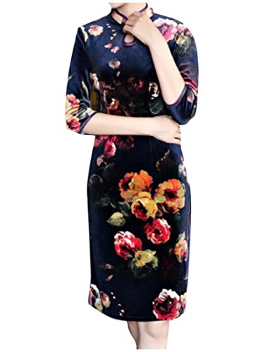 -. Title : Tootess 女性のスタイリッシュなベロア花のプリントドレス