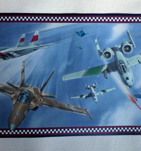 -. Feature : 15 Foot Long Spools - Prepasted Wallpaper Border / 10 Inches Wide - Pattern CK10193B / Military Jets, Air Force Themed / Jets Wallpaper Border / Airplane Wallpaper Border - Patriotic