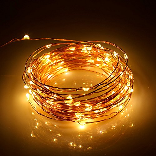 Battery Operated String Lights with Waterproof Timer Box for Outdoor and Indoor in Warm White, Decorative for Christmas holiday,Party,Bedroom,Tent,Garden,Kitchen,33ft 100 Leds Twinkle Copper Wire
