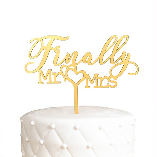 Finally Mr Mrs Acrylic Cake Topper For Wedding Engagement Bridal Shower Cake Decorations (Mirror gold)