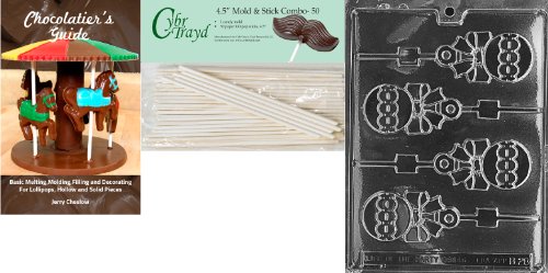 Cybrtrayd 45St50Bk-B028 Rattle Lolly' Baby Chocolate Candy Mold with 50 4.5-Inch Lollipop Sticks and Chocolatier's Guide