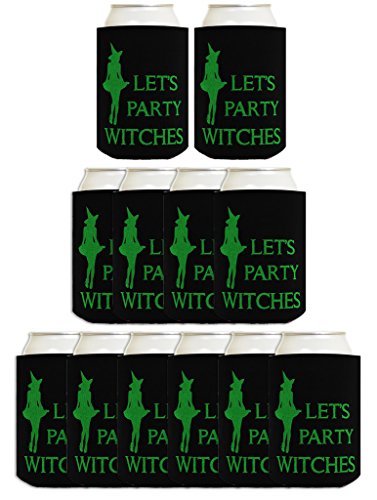 Funny Halloween Beer Coolie Let's Party Witches Sexy Witch Costume Accessory 12 Pack Can Coolie Drink Coolers Coolies Black