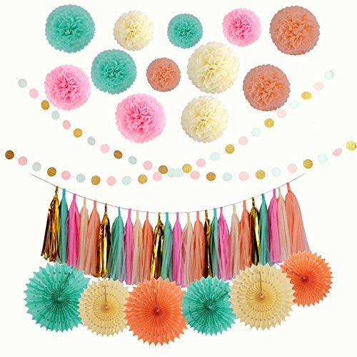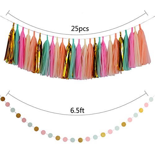 - >What you will get:12Pcs Tissue pompoms flower ,2Pcs Polka dot garlands,6Pcs Tissue paper fan,25Pcs Tissue paper tassel garlands. Total 45Pcs