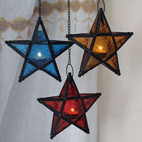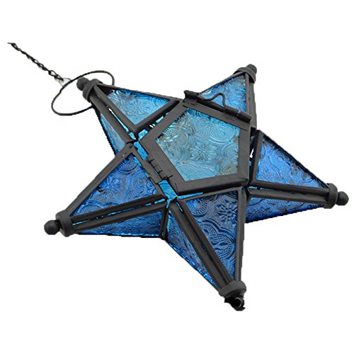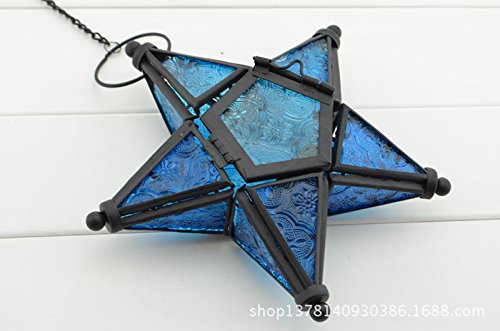 Stunning Star Glass Votive Tea Light Candle Holder Hanging Lighting Lantern Wedding Birthday Party Home Garden Decoration (Blue)