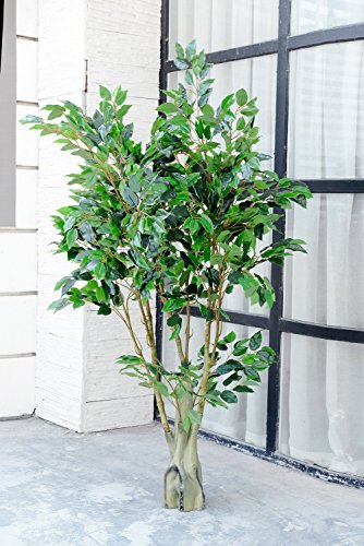 Artificial Ficus Tree with Large Silk Green Leaves Indoor Ourdoor Plant, 5.30-Feet Green, With No Pot(818#)