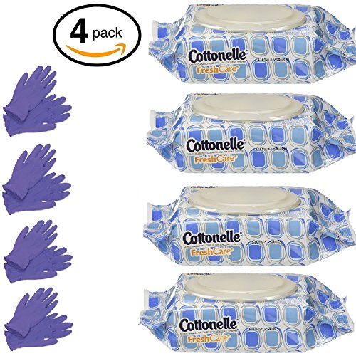 Kleenex Cottonelle FreshCare Flushable Cleansing Cloths, 168 Count (4 Packs x 42 Wipes), Bonus of 8 Disposable Gloves
