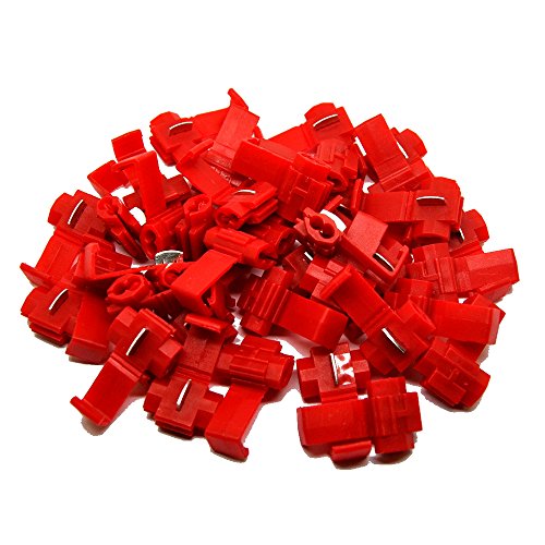 MUYI 100 Pcs Red Electrical IDC 0.5-1.0mm² Wire Connector Double Run or Tap 22-18 AWG (Tap), 18-14 AWG (Run) 0.75x1.26in. (WxL) 10A Max. Current Flame Retardant One Pack (Red)